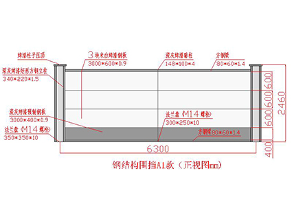 鋼結(jié)構(gòu)圍擋A1款,是根據(jù)深圳市住建局標(biāo)準(zhǔn)要求設(shè)計(jì)制作,一般情況應(yīng)用于半年(6個(gè)月)以上的工程。采用框架式結(jié)構(gòu),且每塊面板都有兩條橫向方通龍骨,兩側(cè)用自制角鐵做豎向龍骨,標(biāo)準(zhǔn)化拼裝。圍擋全部采用金屬材料,表面噴涂烤漆處理,經(jīng)久耐用、不易褪色、耐腐蝕,可循環(huán)使用5年左右,降低成本。